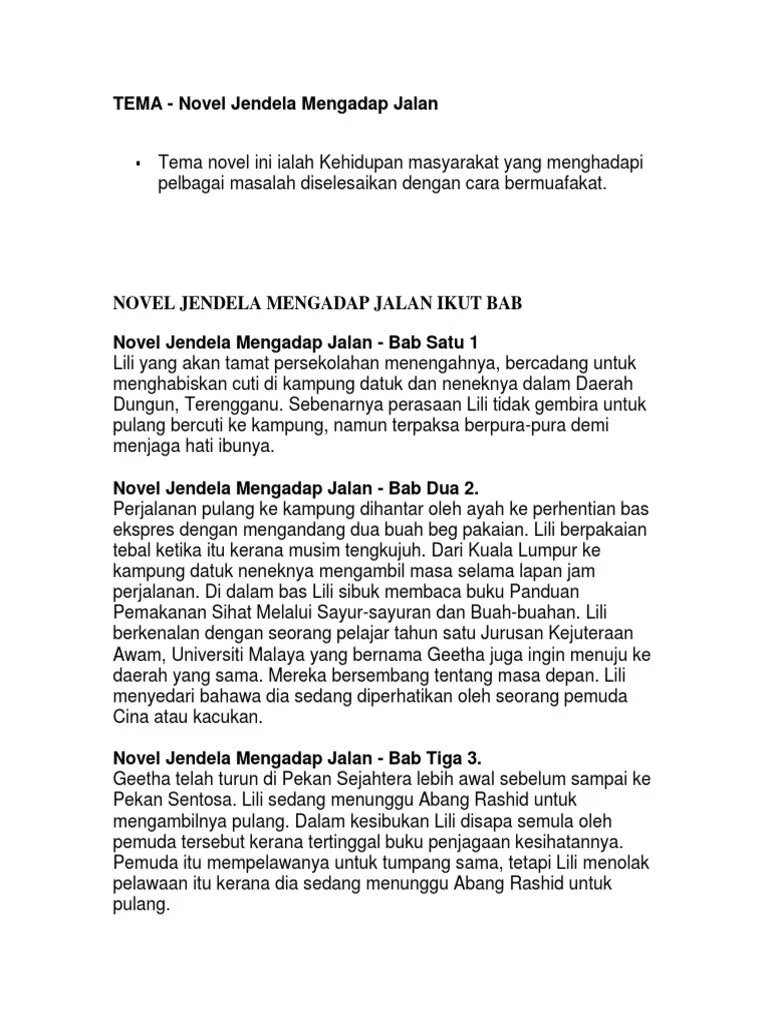 Komponen sastera dan novel bm / bahasa melayu novel tingkatan 4 jendela menghadap jalan. Novel ini mengisahkan sifat cekal dan .